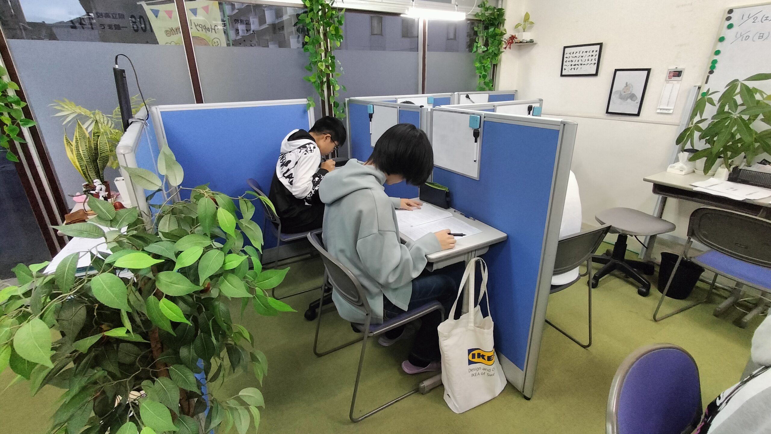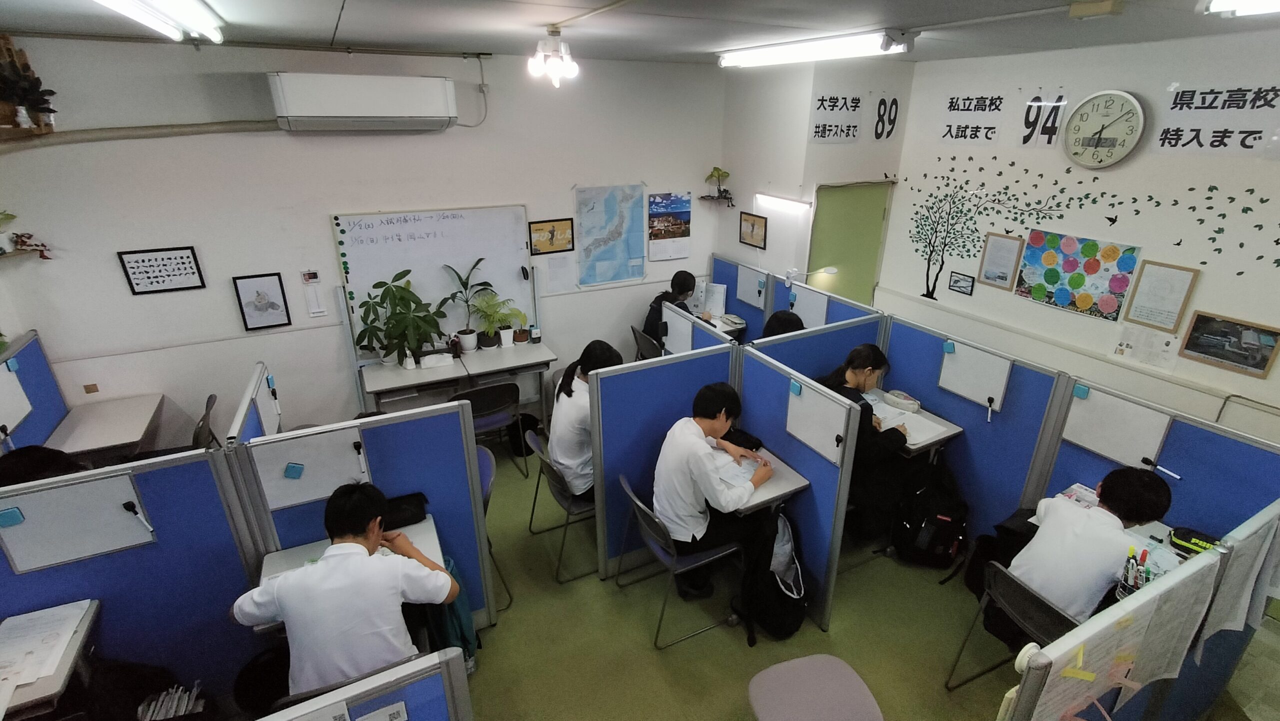 定期テストの2週間前からテストに向けての復習のための時間を設けています。通常授業で受講している教科に関係なく、すべての生徒が5教科の勉強を行います。定期テスト対策授業は無料で行います。
