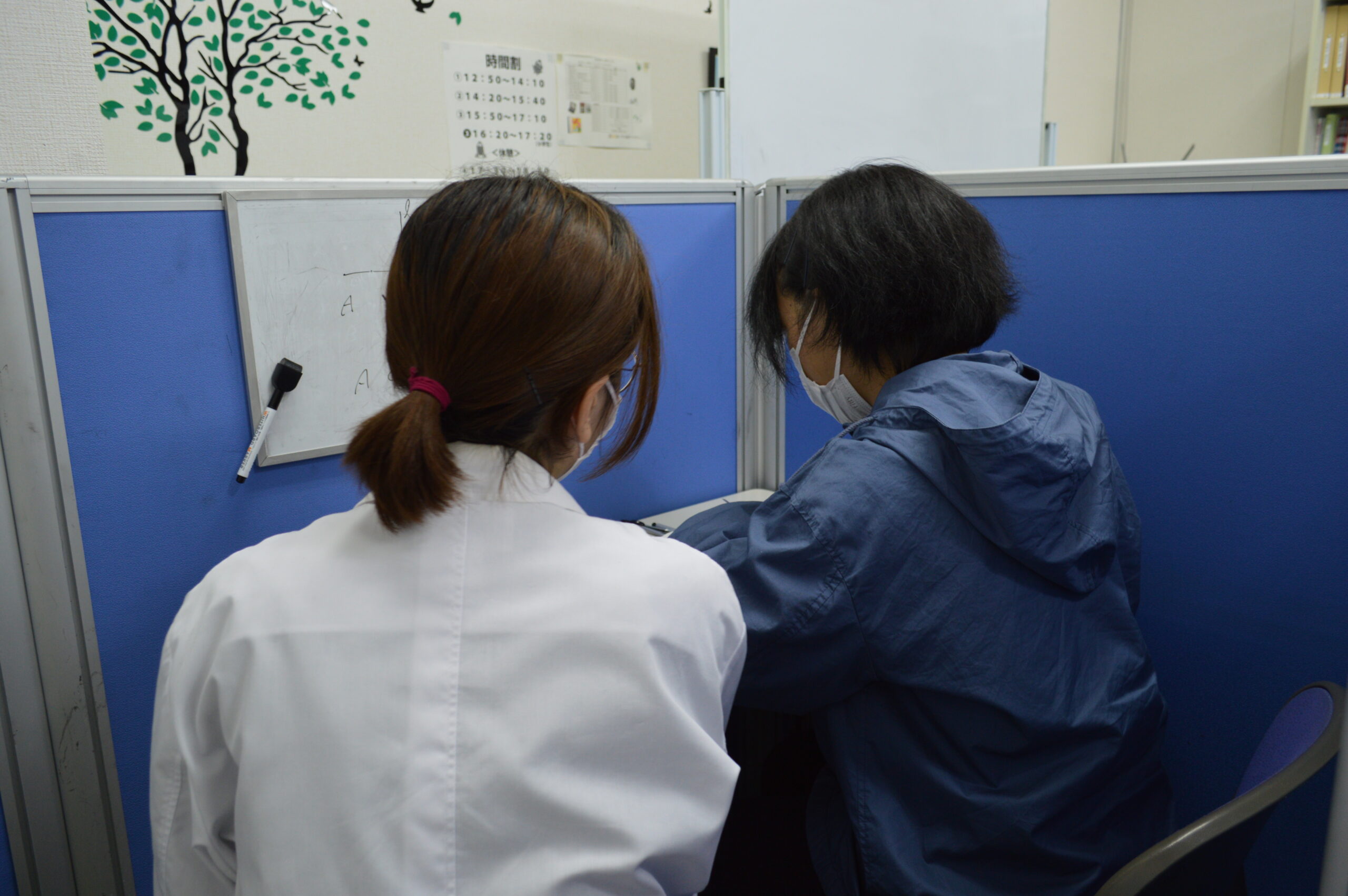 定期テストの2週間前の土日のいずれかの日に、学校から出されている課題ワークや対策プリントを各自持ち寄り、塾で解き学習します。わからないところはその都度質問に対応します。