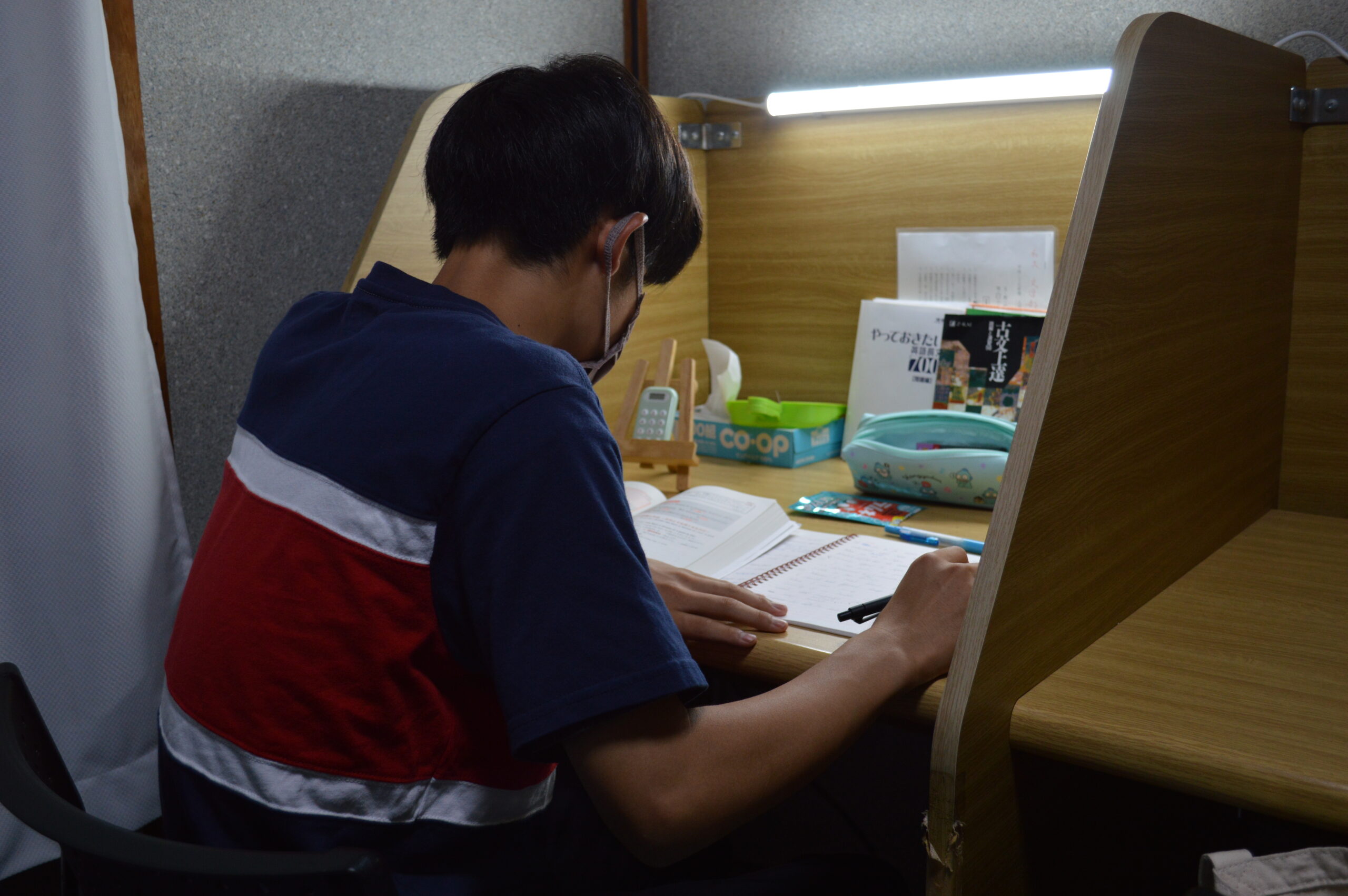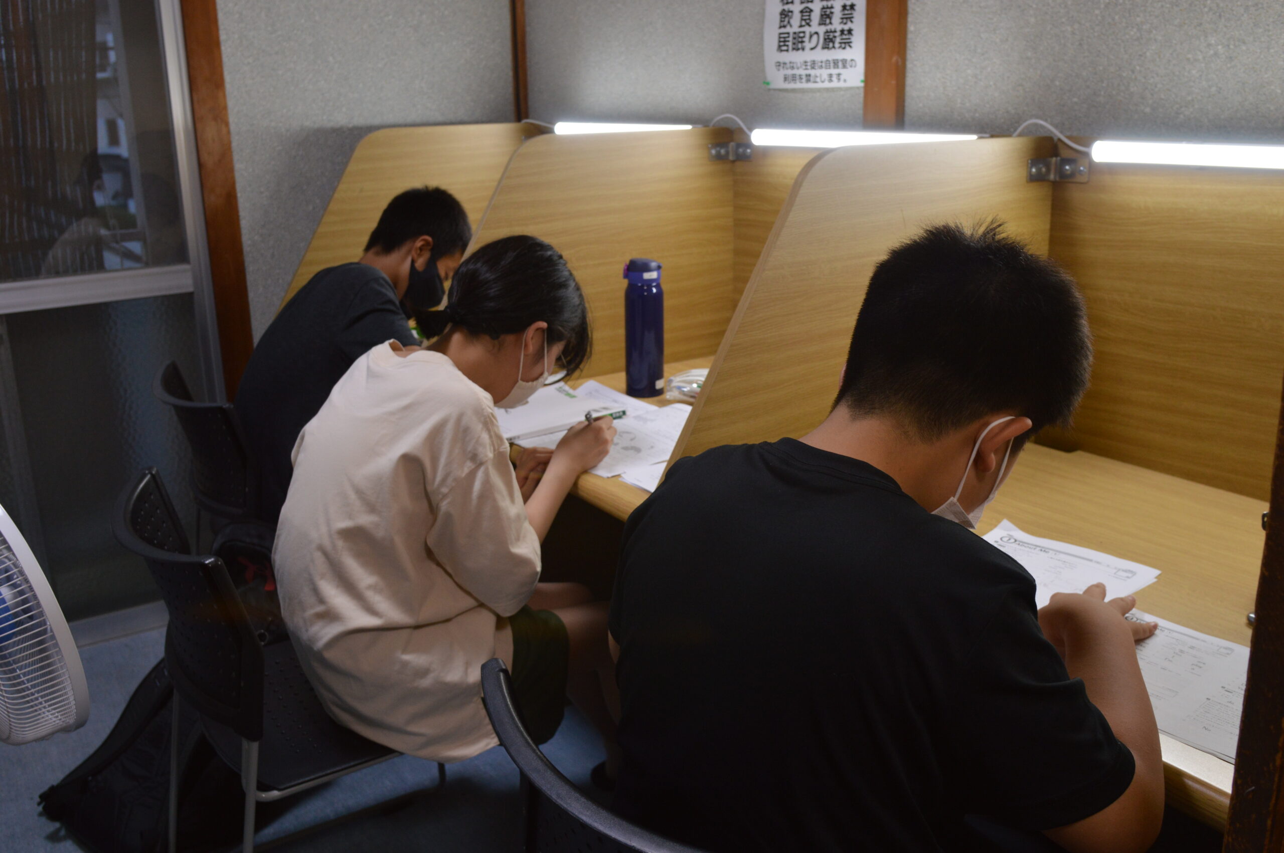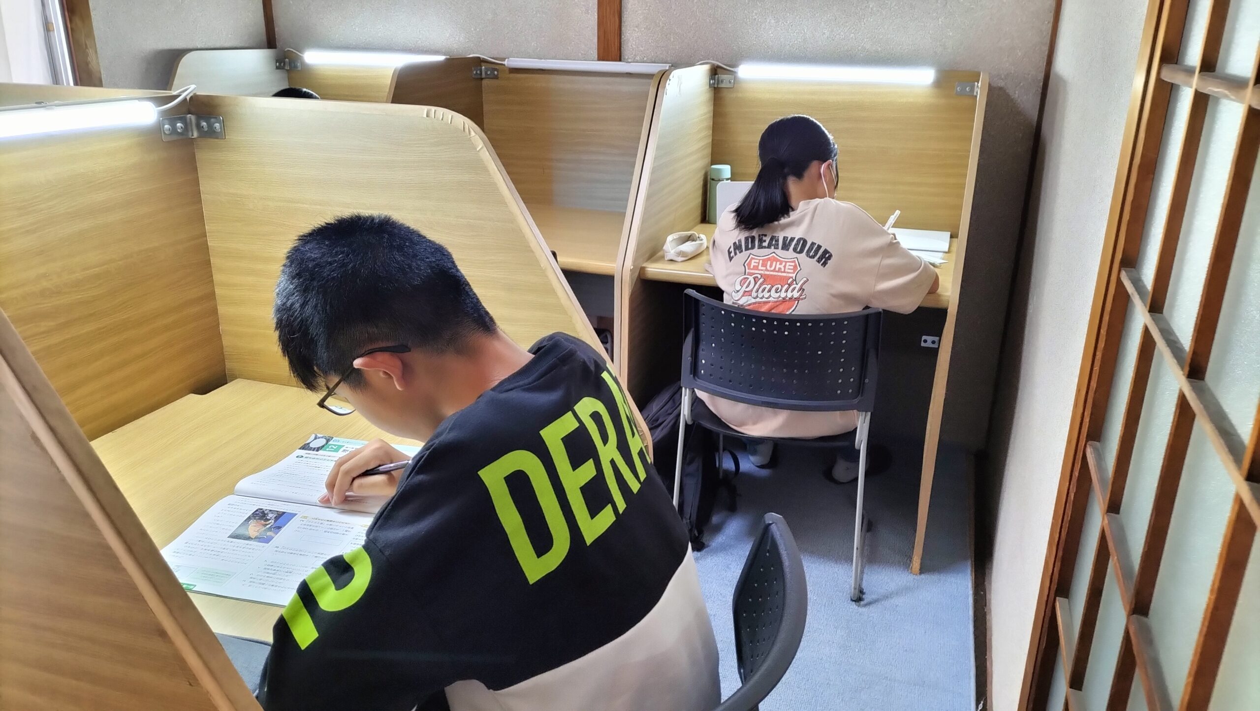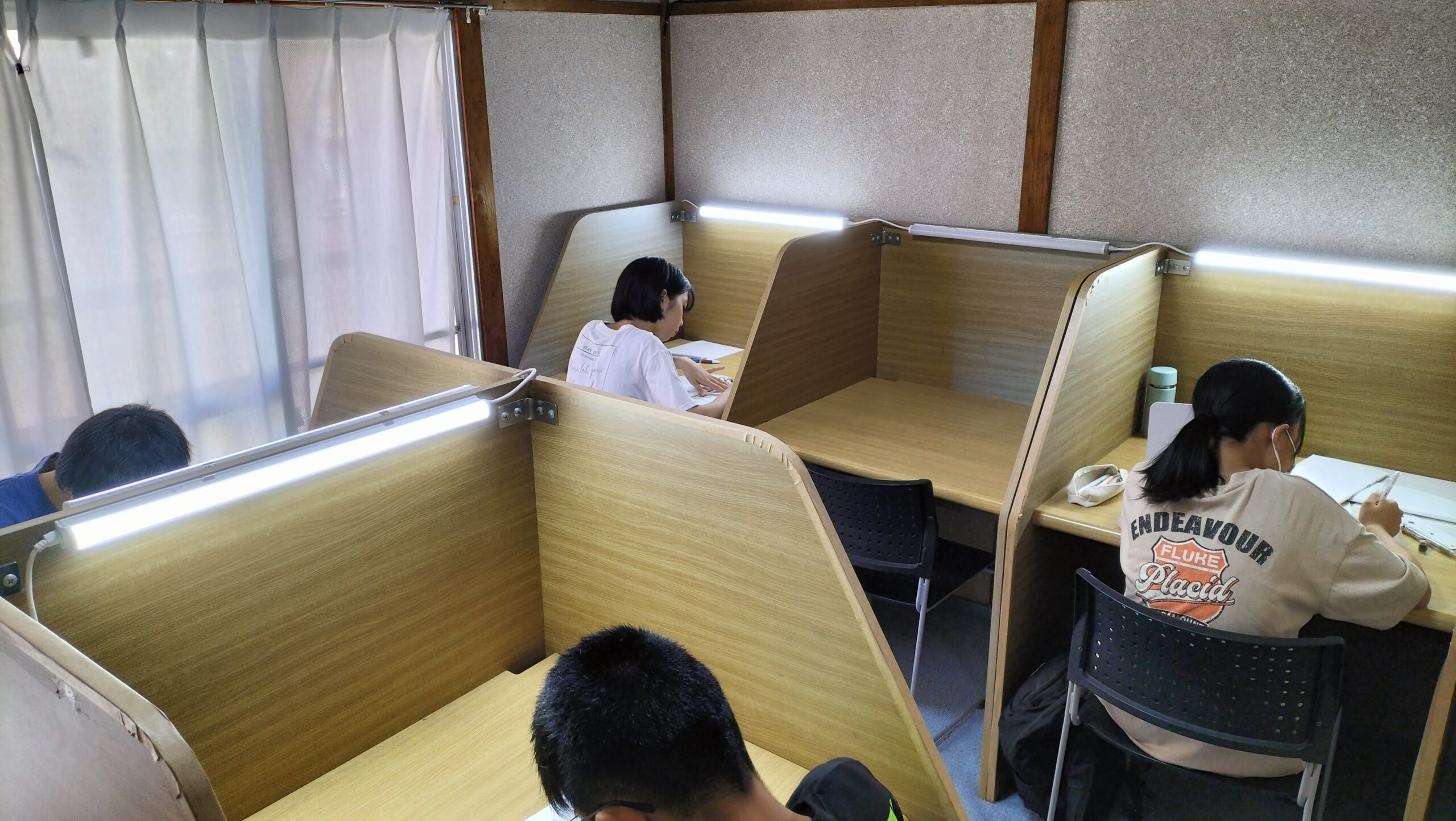 1階の授業スペースの他に2階には自習のためのブースを8席用意しています。