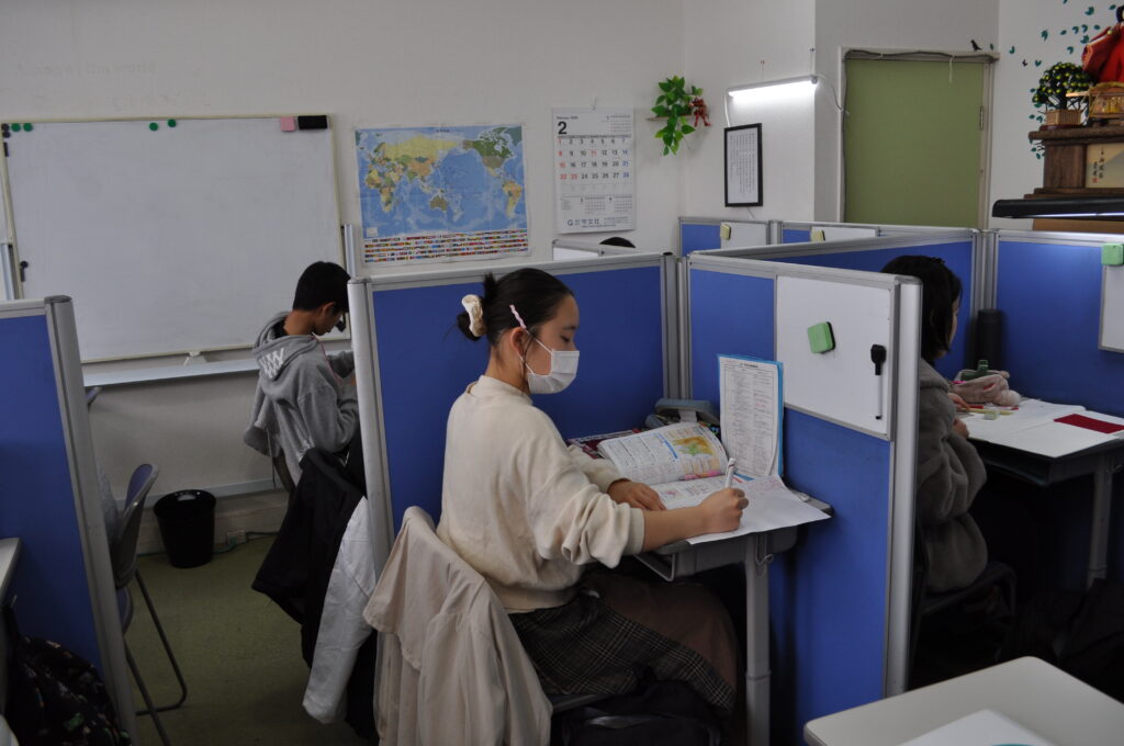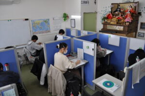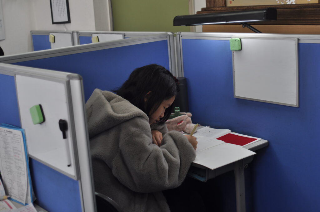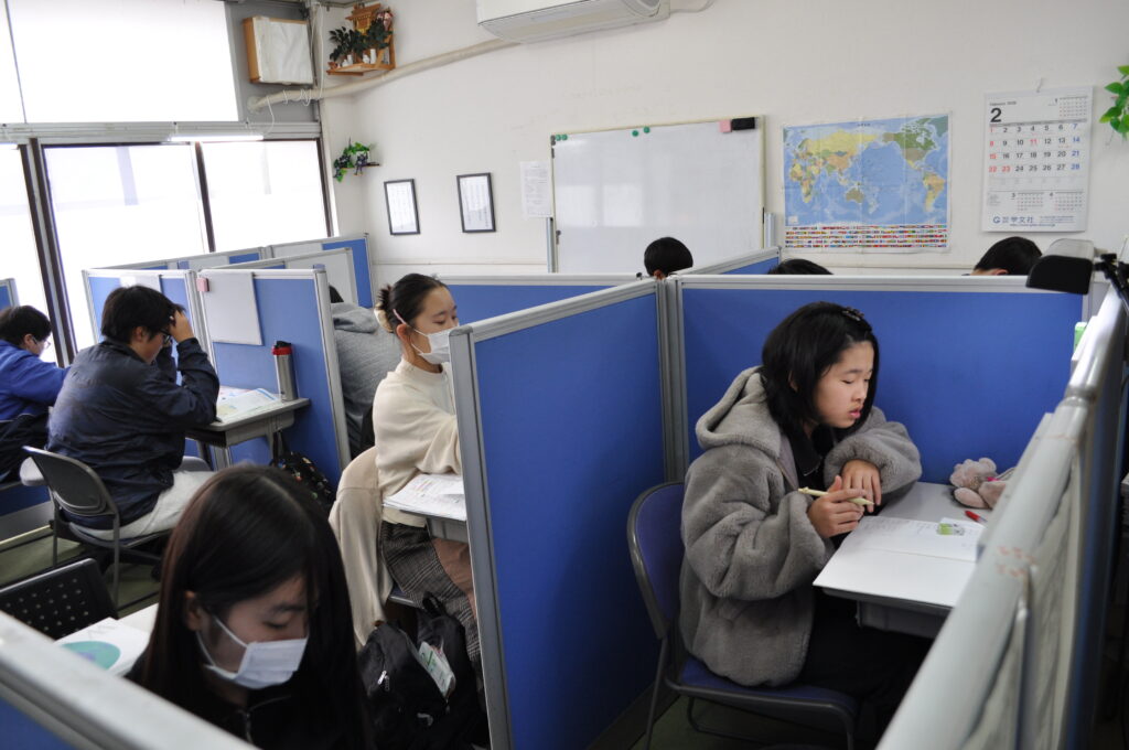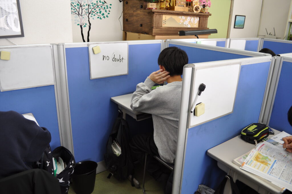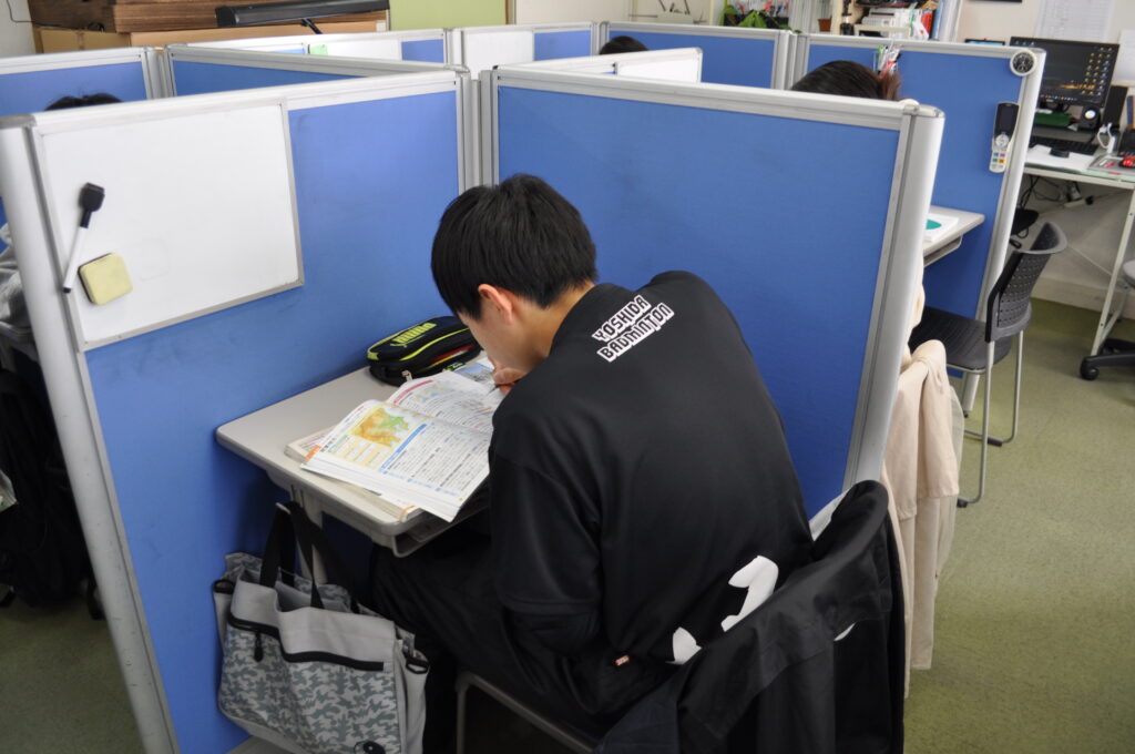 生徒たちは、学校から出されているワークや対策プリントを黙々と解きながら、わからないところを質問していました。